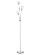 Campani 3 Light Standard Floor Lamp in chrome and satin nickel finish with clear edged acid glasses and an in-line switch