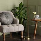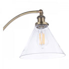 The Isaac Floor Lamp from Laura Ashley, is a contemporary take on an industrial style in a sophisticated Antique Brass Finish. Completed with a glass shade and finished off with a brown braided fabric cable with foot switch.