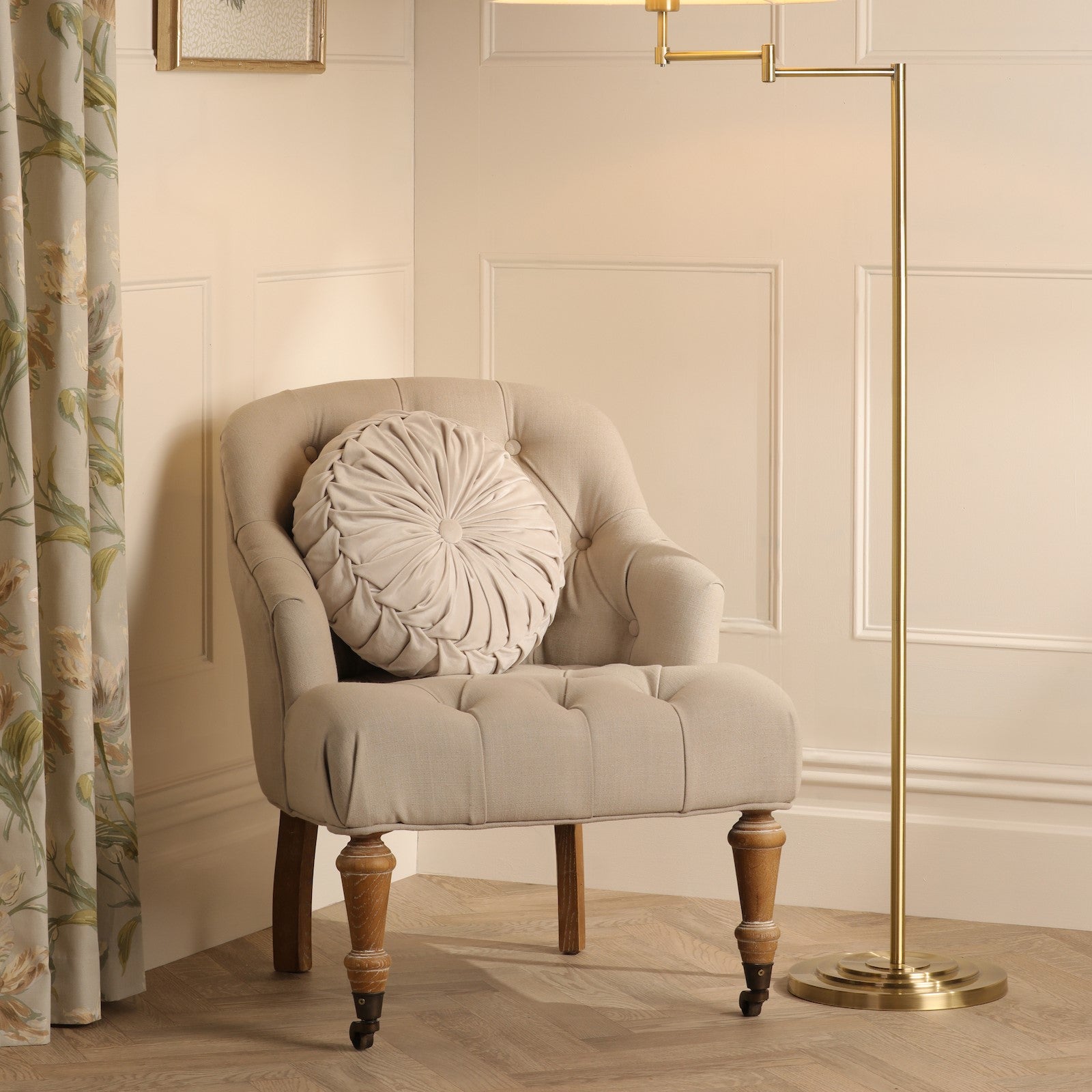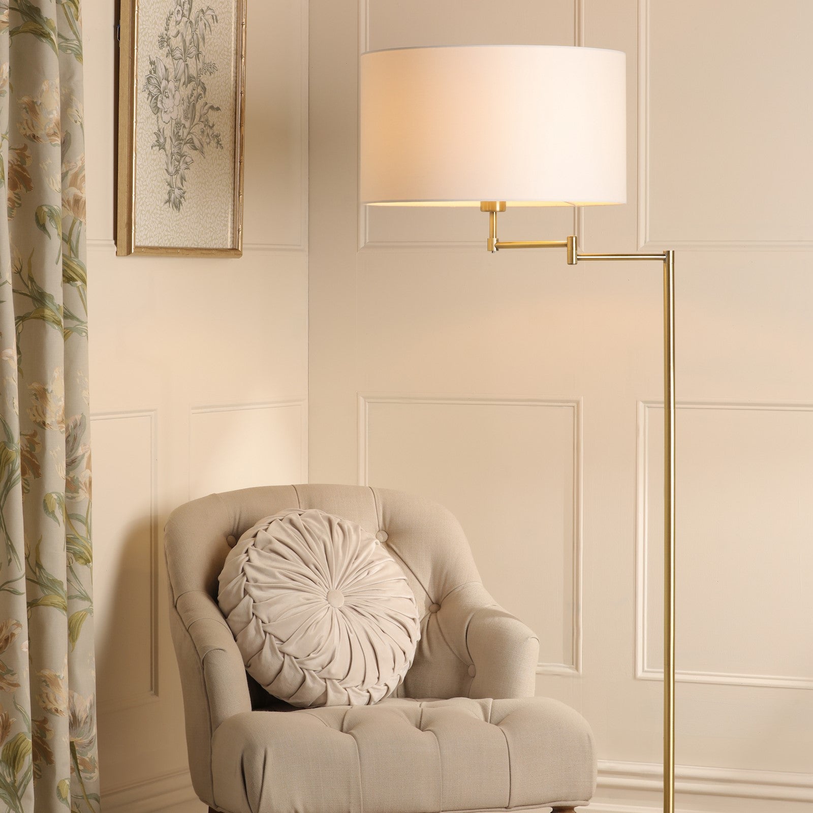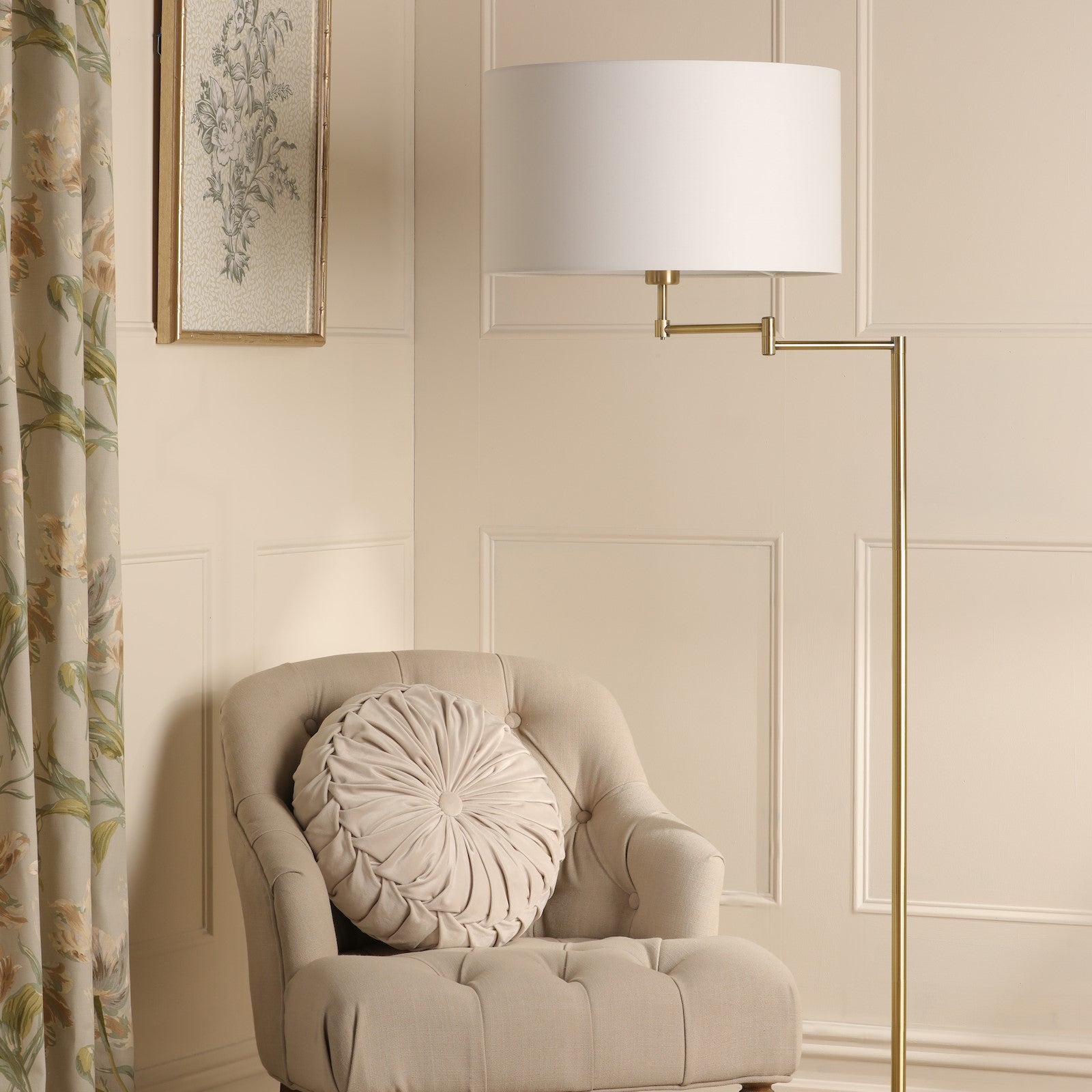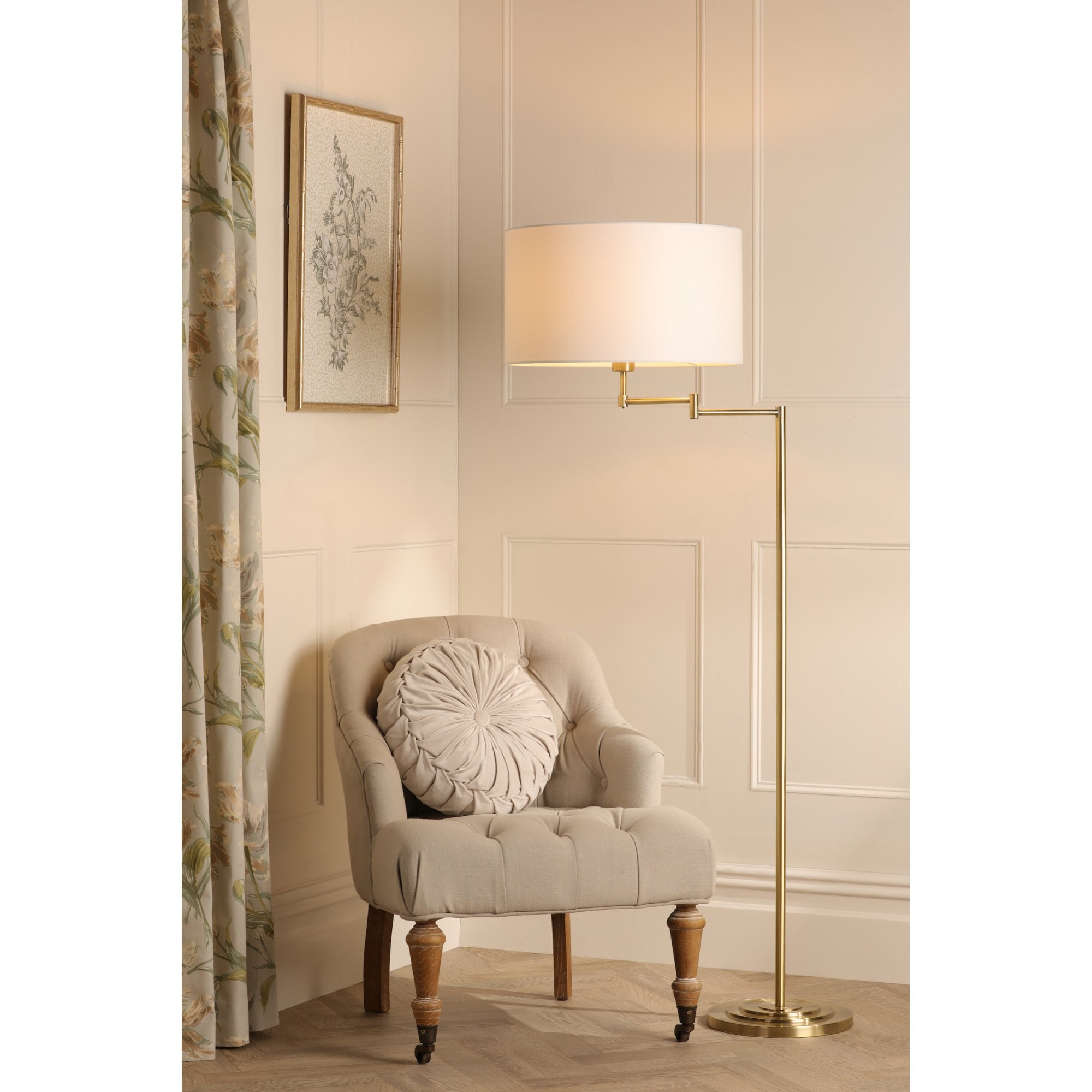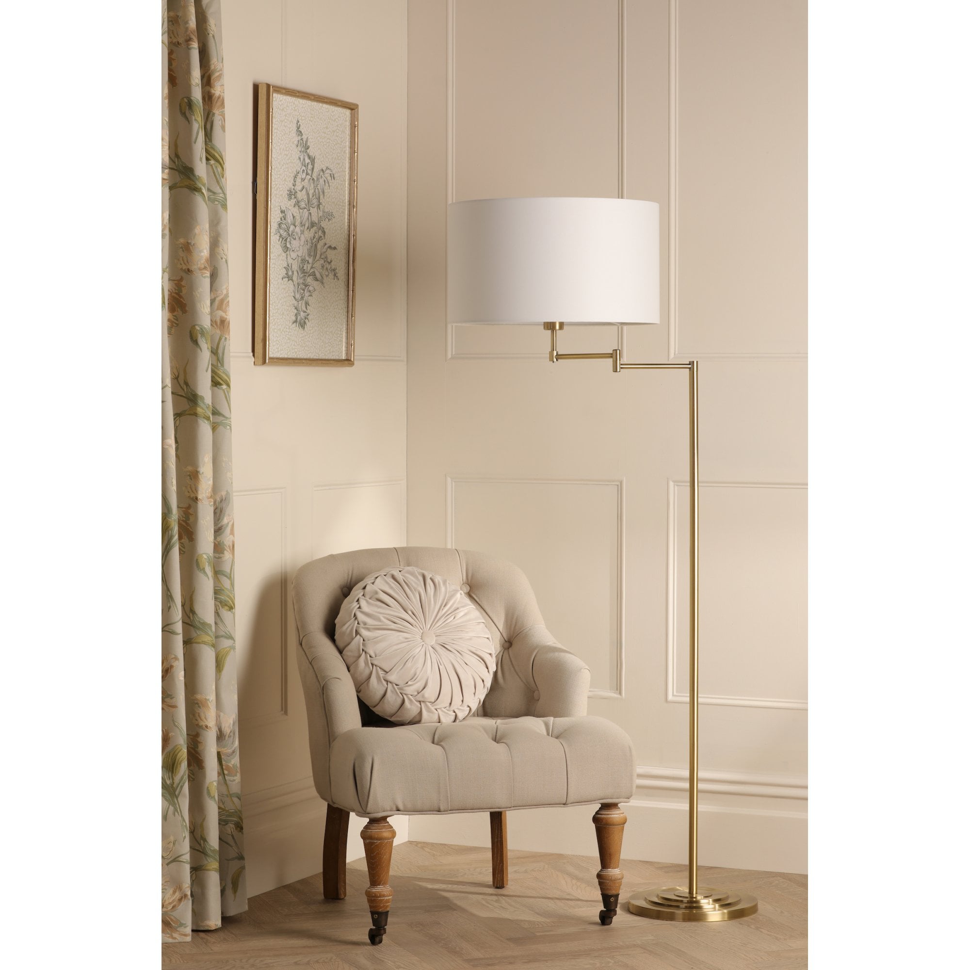 The Marlowe adjustable swing arm floor lamp from Laura Ashley is a great for any spot. Free-standing, and with a double-jointed ‘elbow’ arm to swing with ease into your preferred reading position, it illuminates corners beautifully as well as the pages of your book. With metalwork in bright polished nickel, including a straight stem and Art Deco style round, stepped base, and finished with a off white drum shade, the Marlowe will enhance your favourite spot.