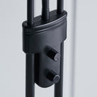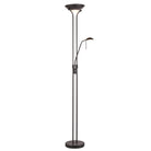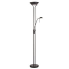 A tall 2 light floor lamp with a double stand supporting an uplighter as well as an adjustable branch holding a reading lamp.