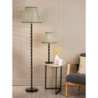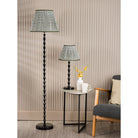 The Siyanda Floor Lamp combines contemporary classic styling with versatile appeal. Finished in high-gloss black, its elongated bamboo-inspired steel stem brings elegance, quality, and presence. It comes complete with a green cotton shade, adding a fresh pop of colour while softly diffusing the light. A luxury black braided cable with convenient floor switch provides refined practicality. Perfect for living rooms, bedrooms, dining areas, kitchens, or hallways, the Siyanda is a stylish and sophisticated choice for creating layered lighting with warmth and character.