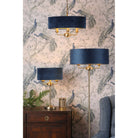 Sorrento 3 Light Antique Brass & Blue Shade Floor Lamp