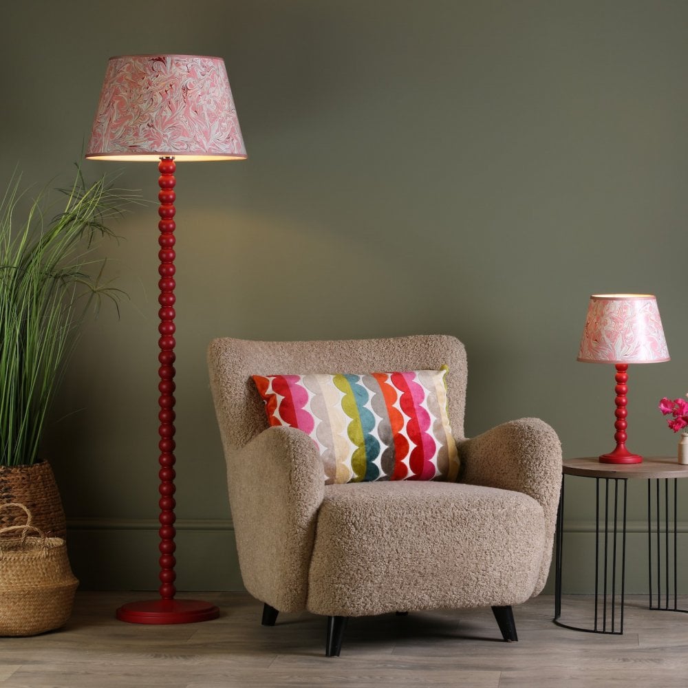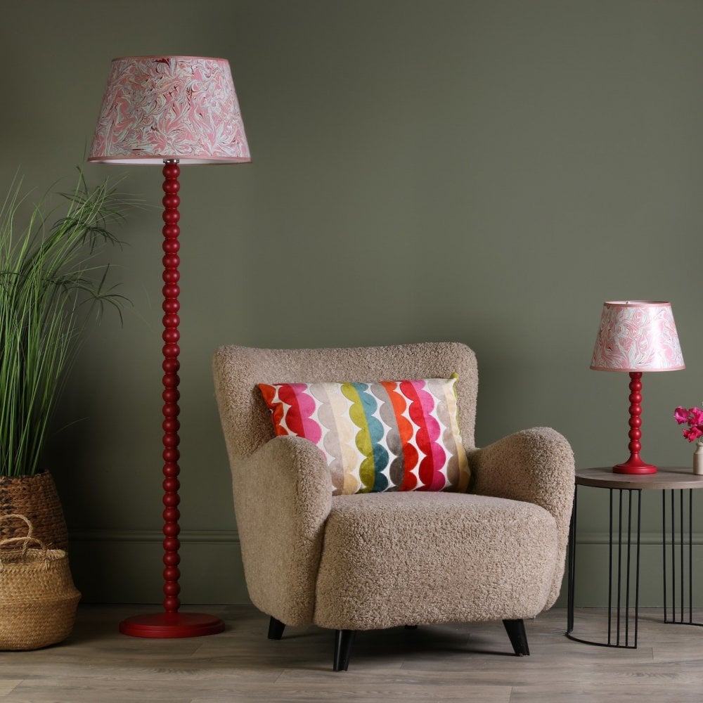 Introducing the Spool Floor Lamp Gloss Red Base Only – a captivating twist on the classic Bobbin wood turning technique. Sold as a base only, this lamp offers you the creative freedom to select the perfect shade through our versatile configurator. Infused with a playful blend of modern design and artistic charm, it's the ideal choice for elevating bedrooms and living rooms with a contemporary pop.