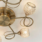 A 3 light flush ceiling fitting which comes finished in an antique brass effect plate, with mesh and clear bead shades. Suitable for use with LED lamps and fully dimmable.