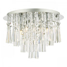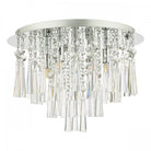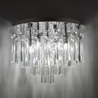 The stunning Icyln 5 light crystal flush ceiling light is heavily dressed in tiers of contemporary crystal. Perfect for adding opulence to a room even with low ceilings, such as living rooms, bedrooms or dining rooms.