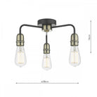 The Kiefer 3 Light Flush Ceiling Light is finished in matt black and antique brass with authentic vintage detailing on the lamp holders. This ceiling fitting has a great deal of character and understated style. It has a generous diameter of 38cm and is capable of providing a great light level. Sitting close to the ceiling it is a good option for low ceilings.