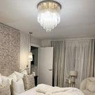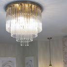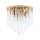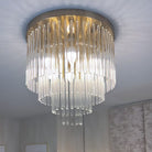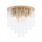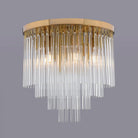 This product consists of an array of tiered glass rods appearing to give a floating illusion inside an antique gold  base. This fitting is flush mounted so is perfect for homes with lower ceilings, hallways, landings, lounges and bedrooms.