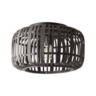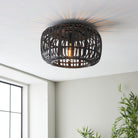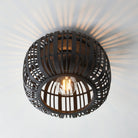 A simple and stylish ceiling-flush light inspired by nature, with sustainably sourced dark bamboo cage, creating a soft warm light. Finished with matt black paint and dark wood detailing.