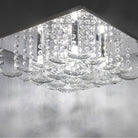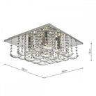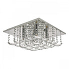 The Orella 5 Light Flush Polished Chrome & Crystal ORE5450 is a curved faceted crystal flush fitting suspended in a perfect square giving a stunning lighting effect. LED compatible, the ORE5450 is part of our wonderful Orella range which features a similarly styled larger fitting.