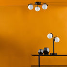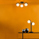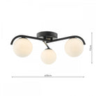 Orlena 3 Light Flush Matt Black and Opal Glass