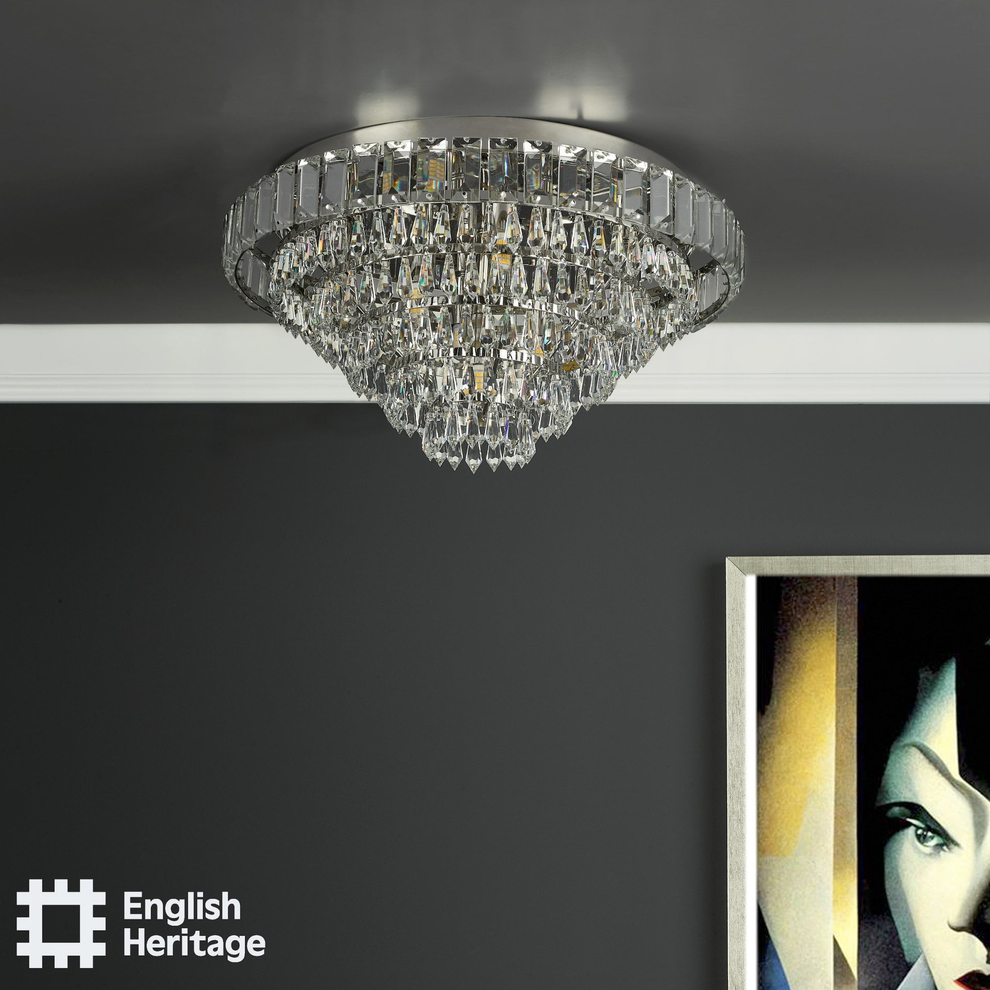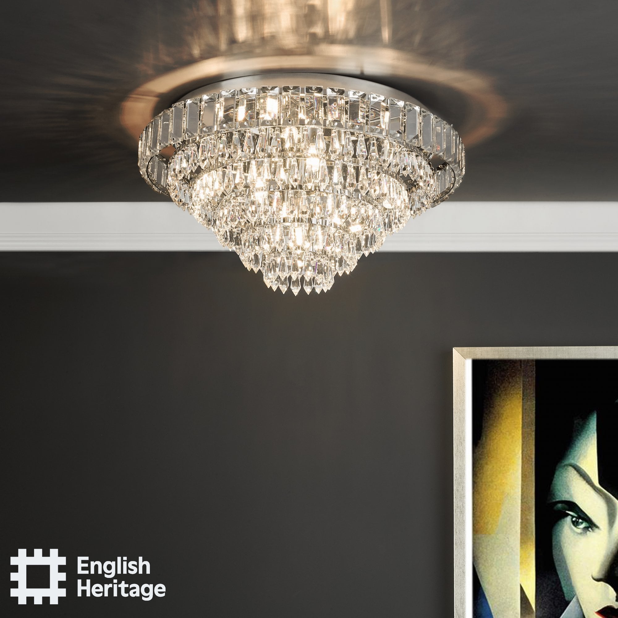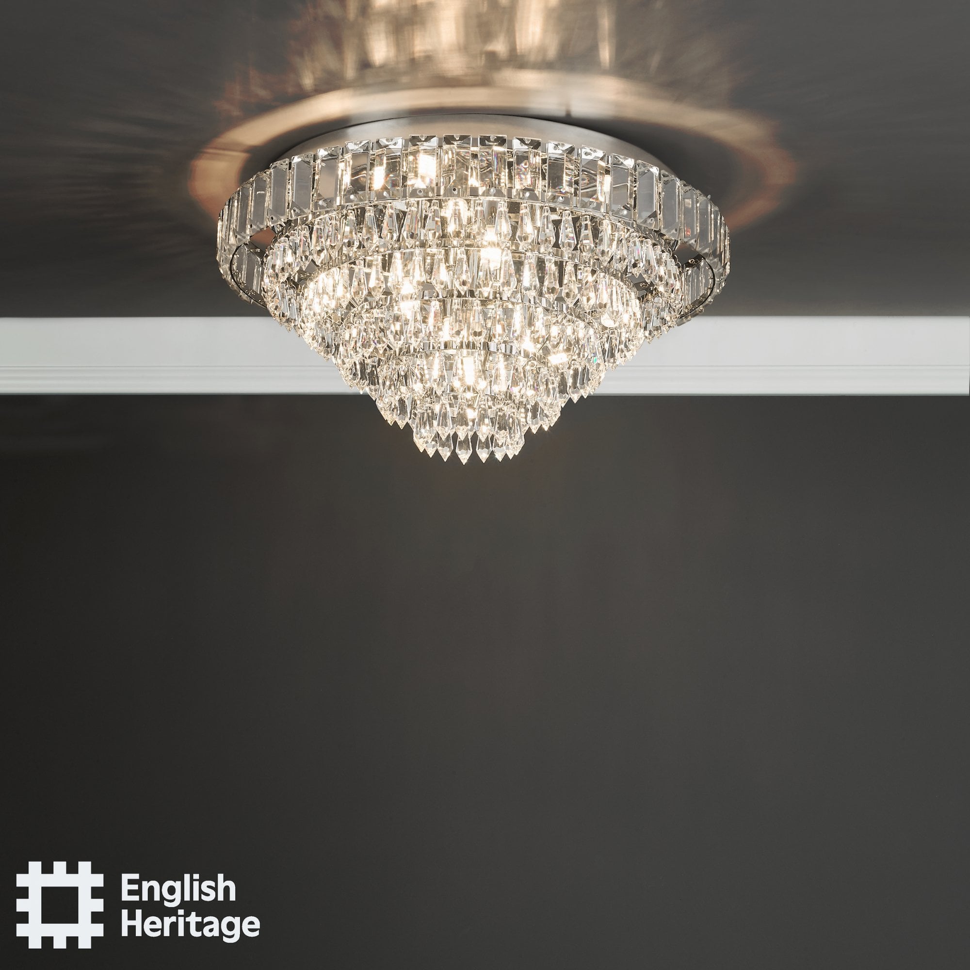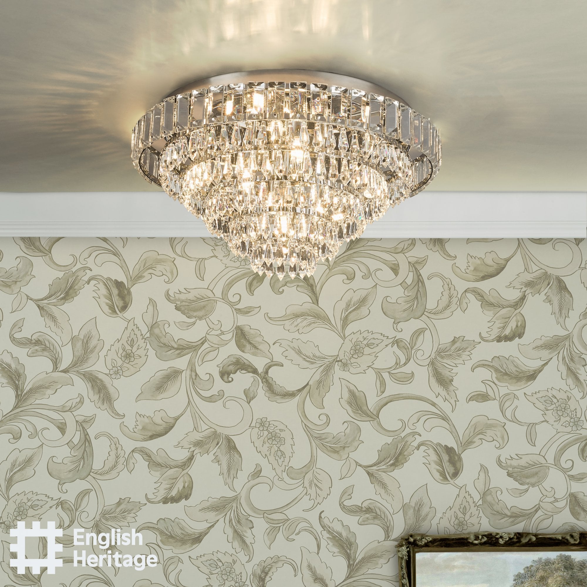 Osborne House Flush Ceiling Light Polished Nickel & Crystal