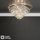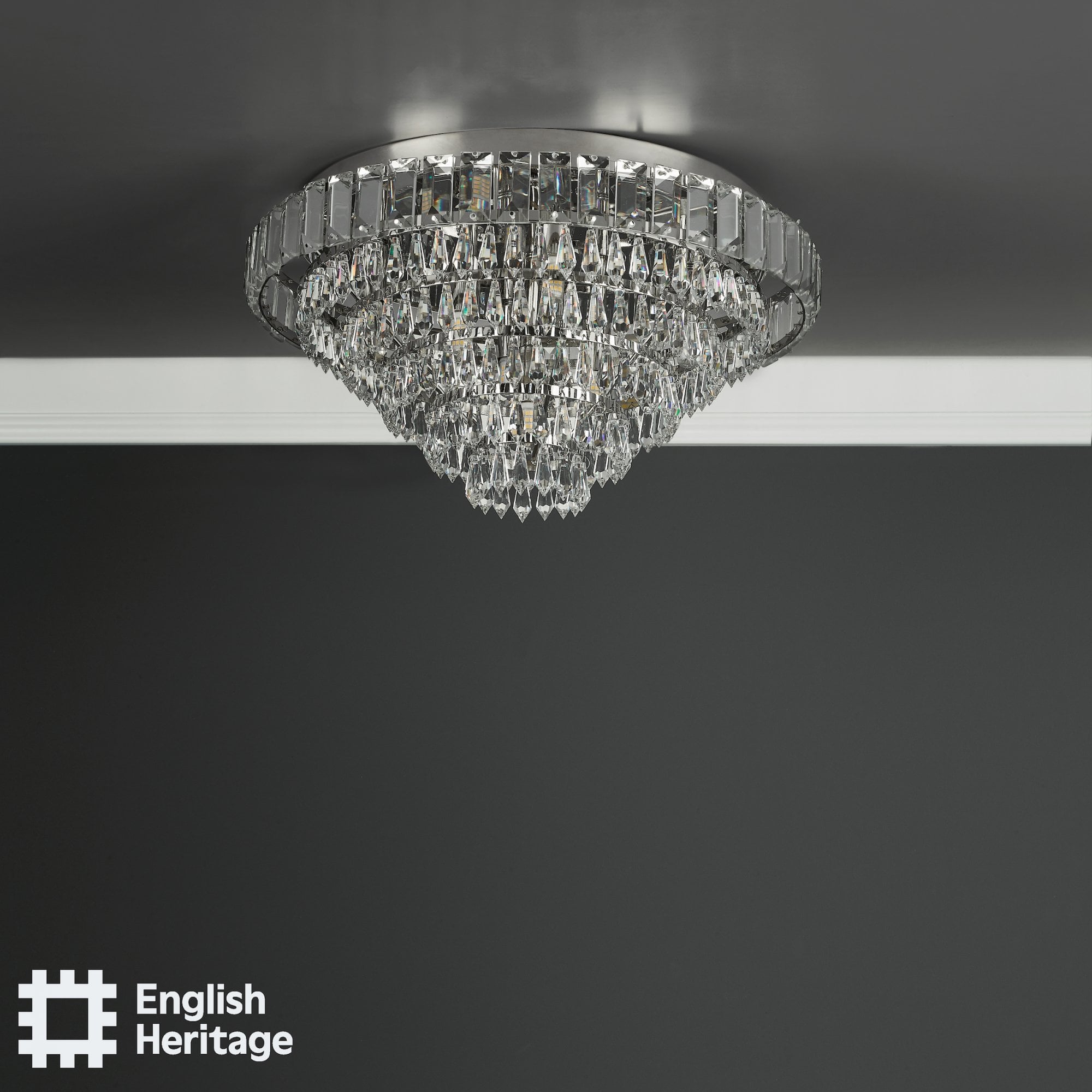 The Elegant Osborne 7-Light Crystal Ceiling Light is inspired by the grand chandeliers in the drawing room of Osborne, Queen Victoria, and Prince Albert’s beloved seaside home.