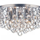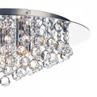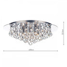 Featuring rings of faceted crystal drops and a polished chrome ceiling plate, the PLUTO 5lt Flush fitting comes fully assembled.