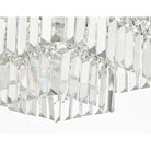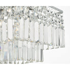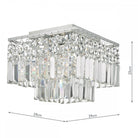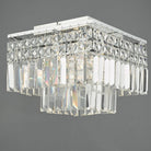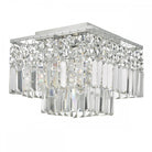 The POSEIDON four-light flush ceiling light in a polished chrome finish features two tiers of coffin and square cut crystals.