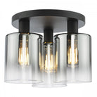 Savannah 3 Light Flush Matt Black and Smoked Glass