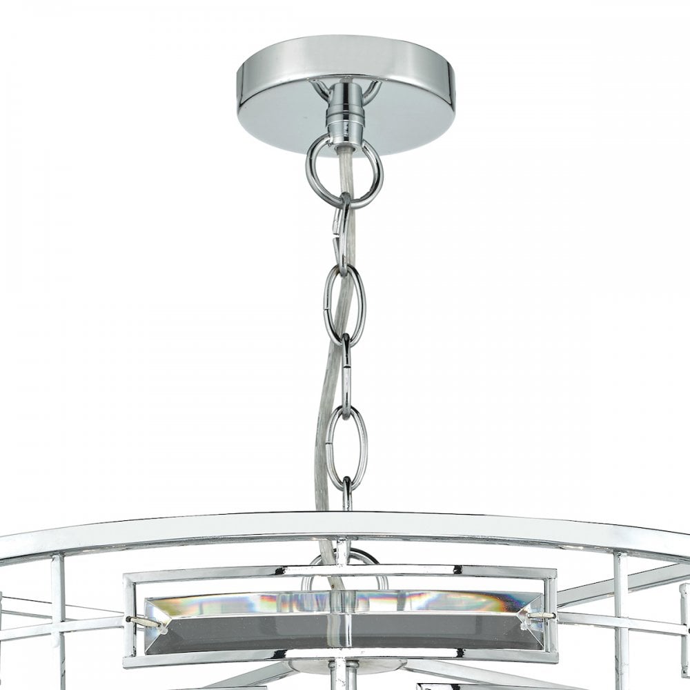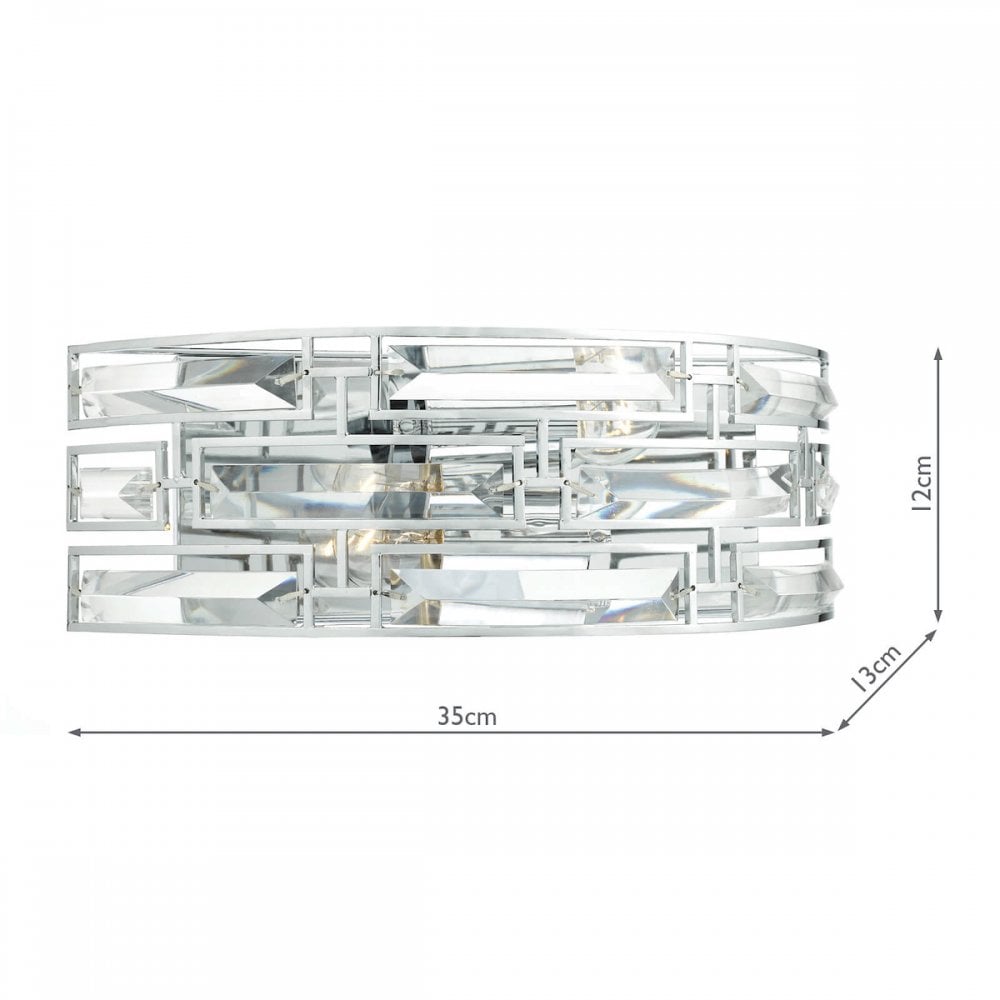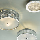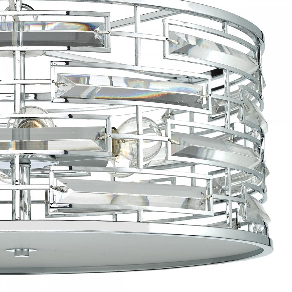 The SEVILLE is a beautiful flush ceiling light made up of delicately curving crystal lozenges, set in a polished chrome frame. With a distinct mid-century feel, it gives out a beautiful sparkling light that is softly diffused from below by a tempered white opal glass diffuser. Suitable for low ceilings.