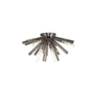 The Syrah collection presents an intriguing glass shape moulded into a three dimensional triquetra. The grooves along each sized glass create an appealing optical effect which is effortlessly enhanced with the use of tubular lamps. The wide variety of fixtures available in this range span from a 6 light semi flush to an impacting 32 light pendant. The complementing wall lamps available allow for further application built around the same lighting family. Each frame can be chosen with either a brown oxide, polished nickel or matt black frame with either clear, champagne gold or smoke glass.