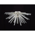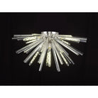 The Syrah collection presents an intriguing glass shape moulded into a three dimensional triquetra. The grooves along each sized glass create an appealing optical effect which is effortlessly enhanced with the use of tubular lamps. The wide variety of fixtures available in this range span from a 6 light semi flush to an impacting 32 light pendant. The complementing wall lamps available allow for further application built around the same lighting family. Each frame can be chosen with either a brown oxide, polished nickel or matt black frame with either clear, champagne gold or smoke glass.