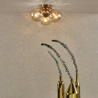 Ulrika 3 Light Flush Antique Brass and Amber Glass