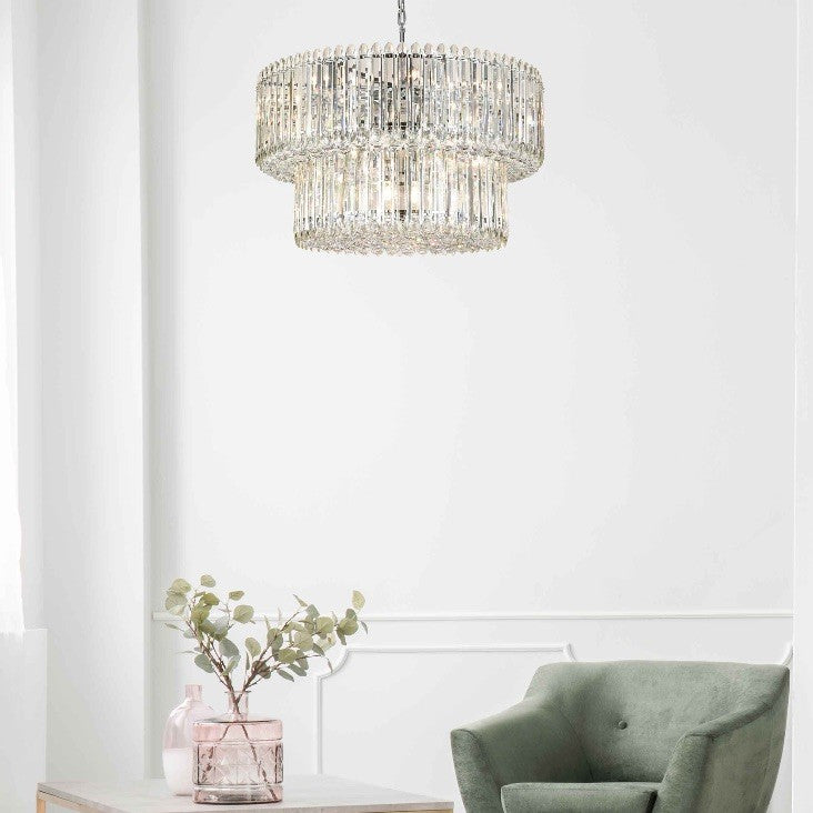 Diva Pendant Ceiling Light Polish Chrome & Crystal Glass Spheres 20 Light