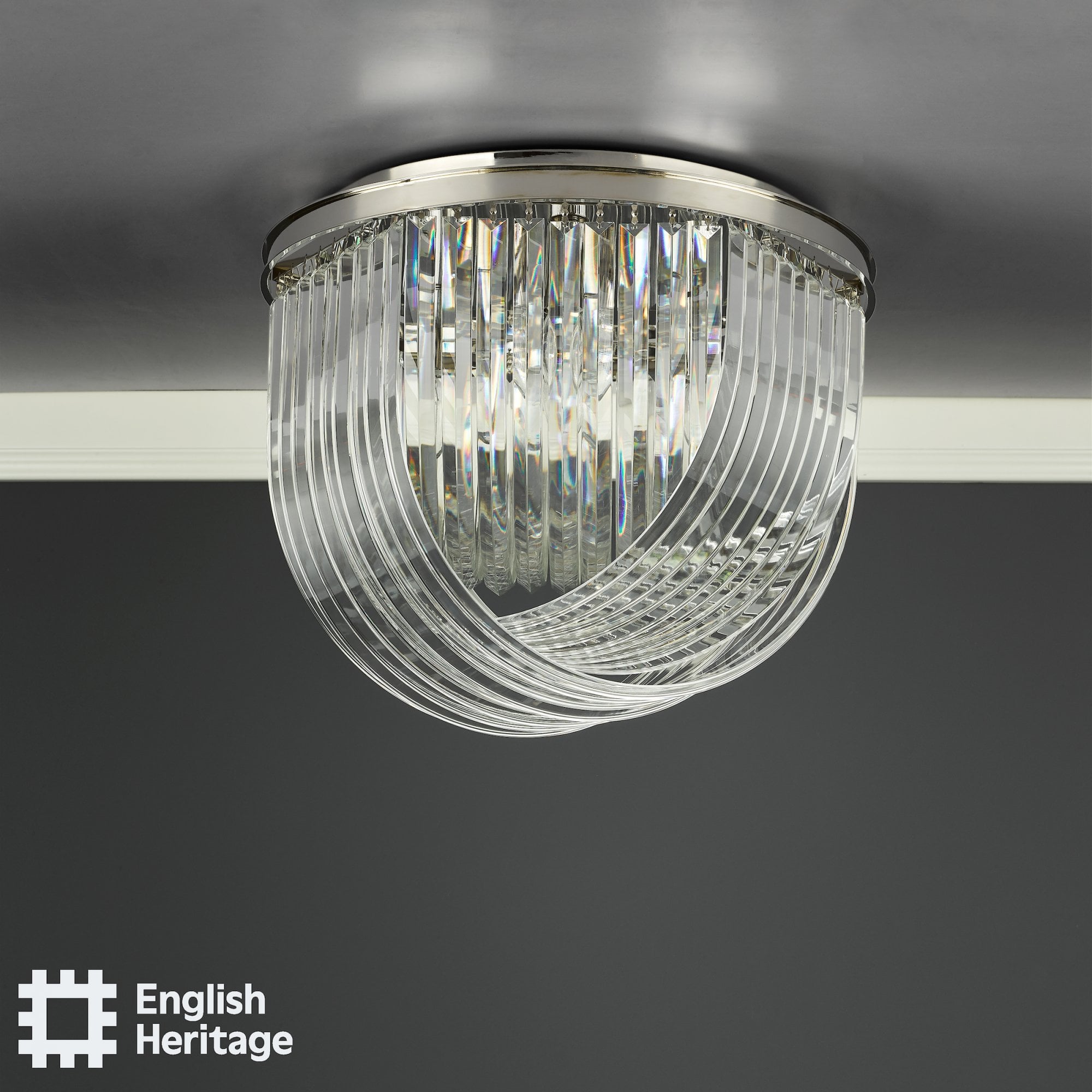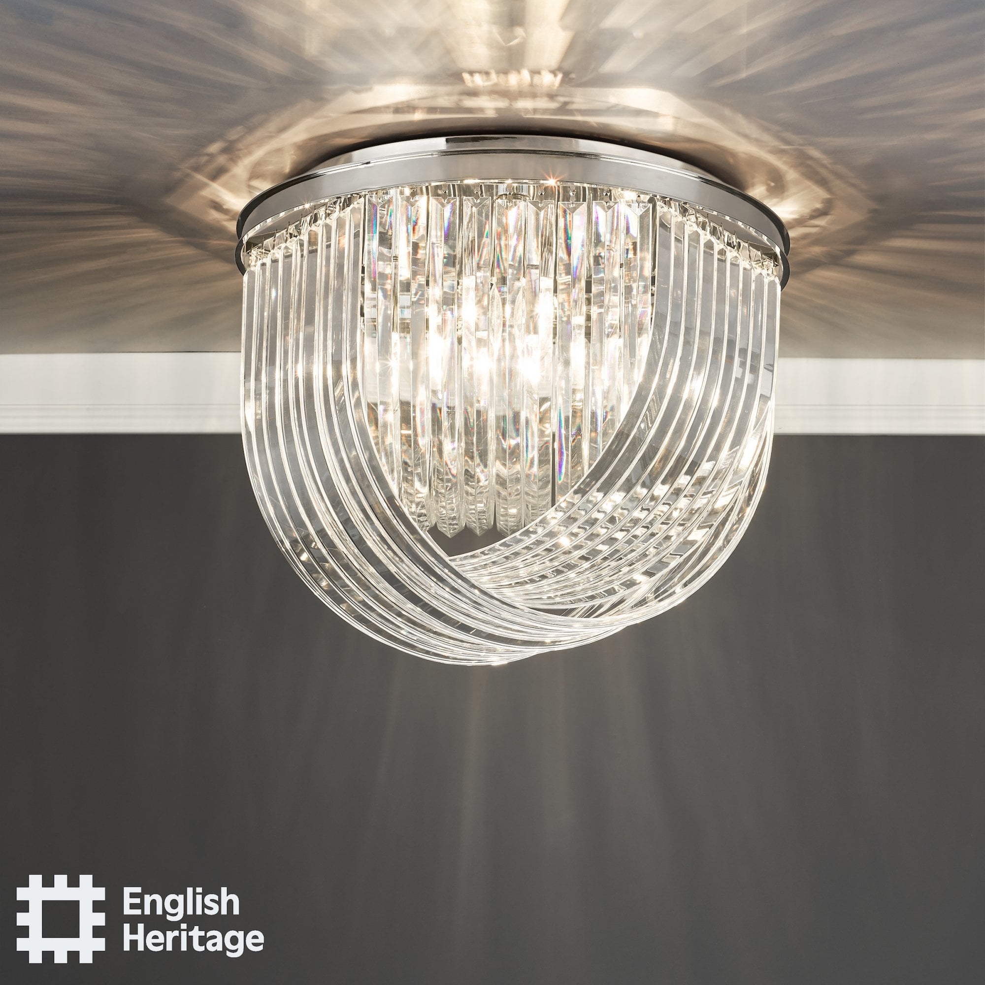 Part of the English Heritage lighting collection, inspired by Great British houses and gardens. There’s inspiration at every angle at Eltham Palace. This ground-breaking house combines medieval remains with masterful Art Deco design including Marion Dorn’s circular rug, which took pride of place in the grand entrance hall.