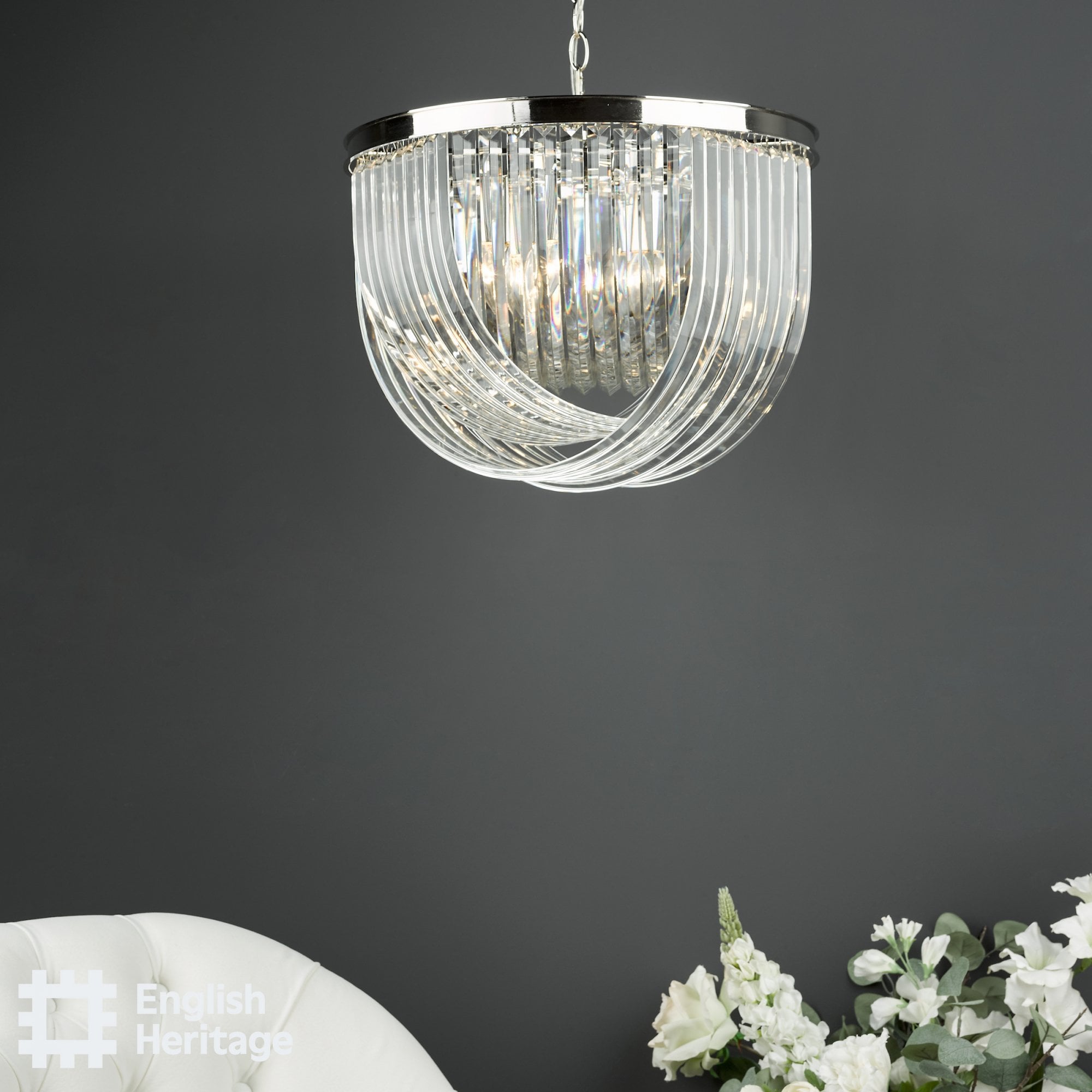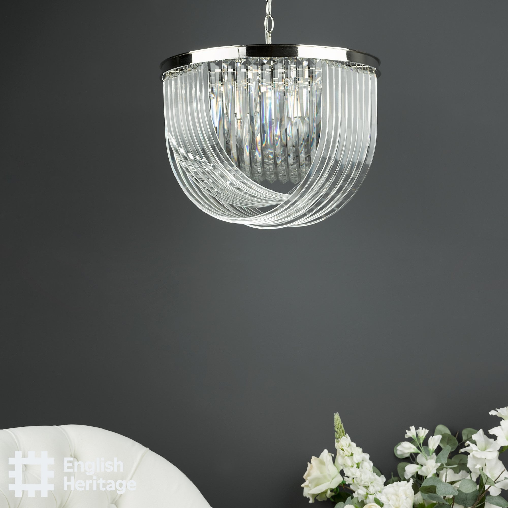 Our designers worked hard to bring a taste of 1930s glamour to your home with these opulent swagged crystal lamps and geometric forms inspired directly by this Art Deco jewel. The use of polished nickel metalwork coupled with a subtle yet stylish surface flourish serves as a counterpoint to the crystal.