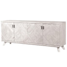 This pale fir parquet sideboard blends understated elegance with functional design, ideal for Scandinavian or minimalist interiors. Its chevron-patterned doors introduce refined texture, while four angled legs provide a modern, sleek silhouette. Offering ample storage behind four doors, it keeps your space organised without sacrificing style.