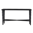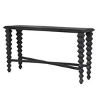 Crafted from rich mango wood, the Ranya Black Console Table combines durability with sophisticated design. Its sleek black finish highlights the natural grain, while the striking geometric legs offer a contemporary structural elegance. Perfect for entryways or living rooms, this table provides a sturdy surface for décor or essentials, seamlessly blending artisan craftsmanship with modern style.