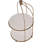 The Belvedere Aged Gold Two-Tier Buffet Stand makes a striking statement piece in both traditional and modern interiors. Designed with two tiers to hold a variety of items, from food to décor, the two-tier design provides ample space for a stylish and functional display. The rich aged gold metal frame and White Banswara marble are a sophisticated combination. A single-tier, two tier and multi-tier circular buffet stand are all available as part of the Belvedere collection.
