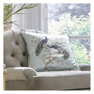 Classically ornate, the Laura Ashley Belvedere cushion features elegant Peacocks and timeless florals, it is serene and stately.