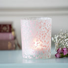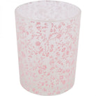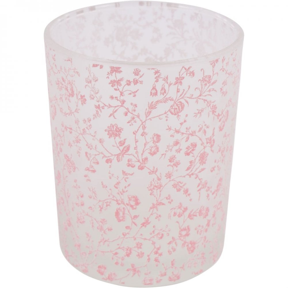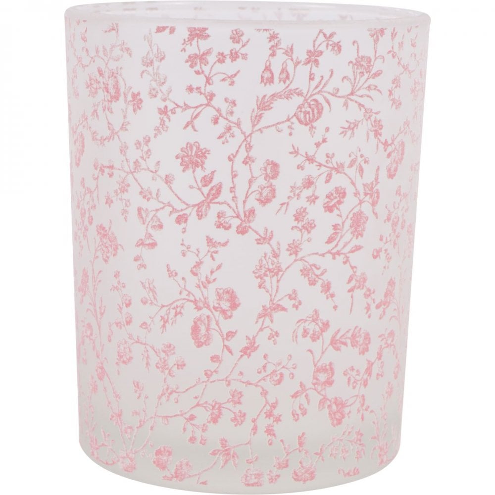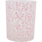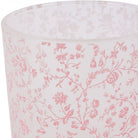 A tall glass hurricane featuring Laura Ashley’s iconic Aria design on white frosted glass background, measuring 10 x 10 and 12 cm in height.