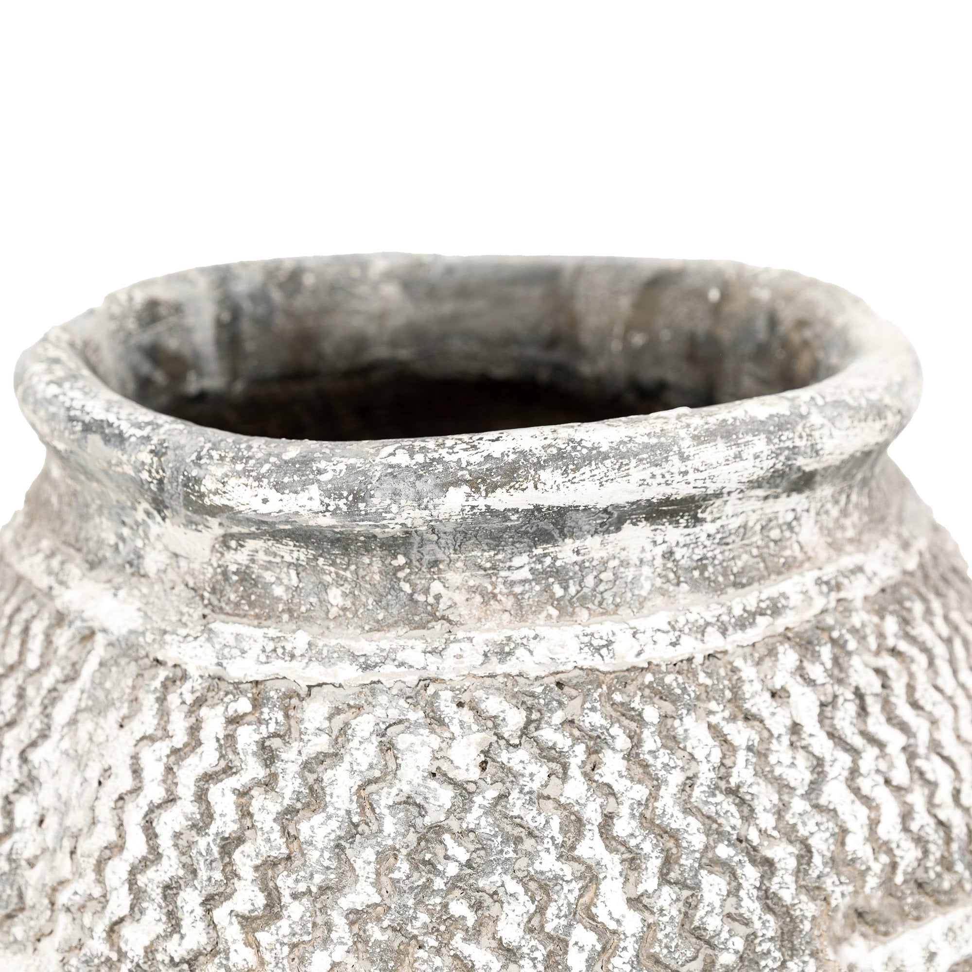 With a rough distressed texture, this vase has a rustic charm that will look great inside or out. Perfect to pair with faux floral displays, a matching smaller size is also available.