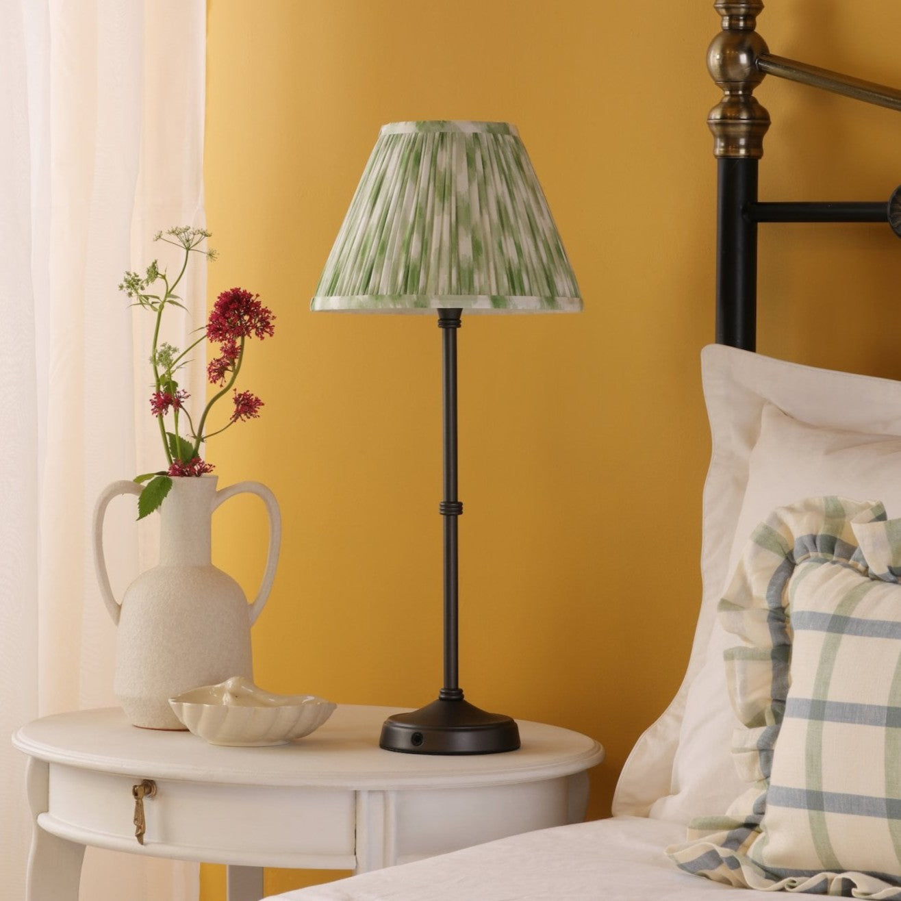 The Dahl rechargeable table lamp offers stylish, portable lighting with a classic matt black finish. Perfect for areas without plug sockets or occasional outdoor use (not waterproof), it provides up to 8 hours of warm illumination on a single charge via USB-C. A 3-stage touch dimmer allows you to set the ideal ambience, while the design can be paired with your choice of shade up to 25cm for a personalised look. Compact and versatile, the Dahl is perfect for reading in bed, dining al fresco, or adding a touch of elegance to any corner of the home.