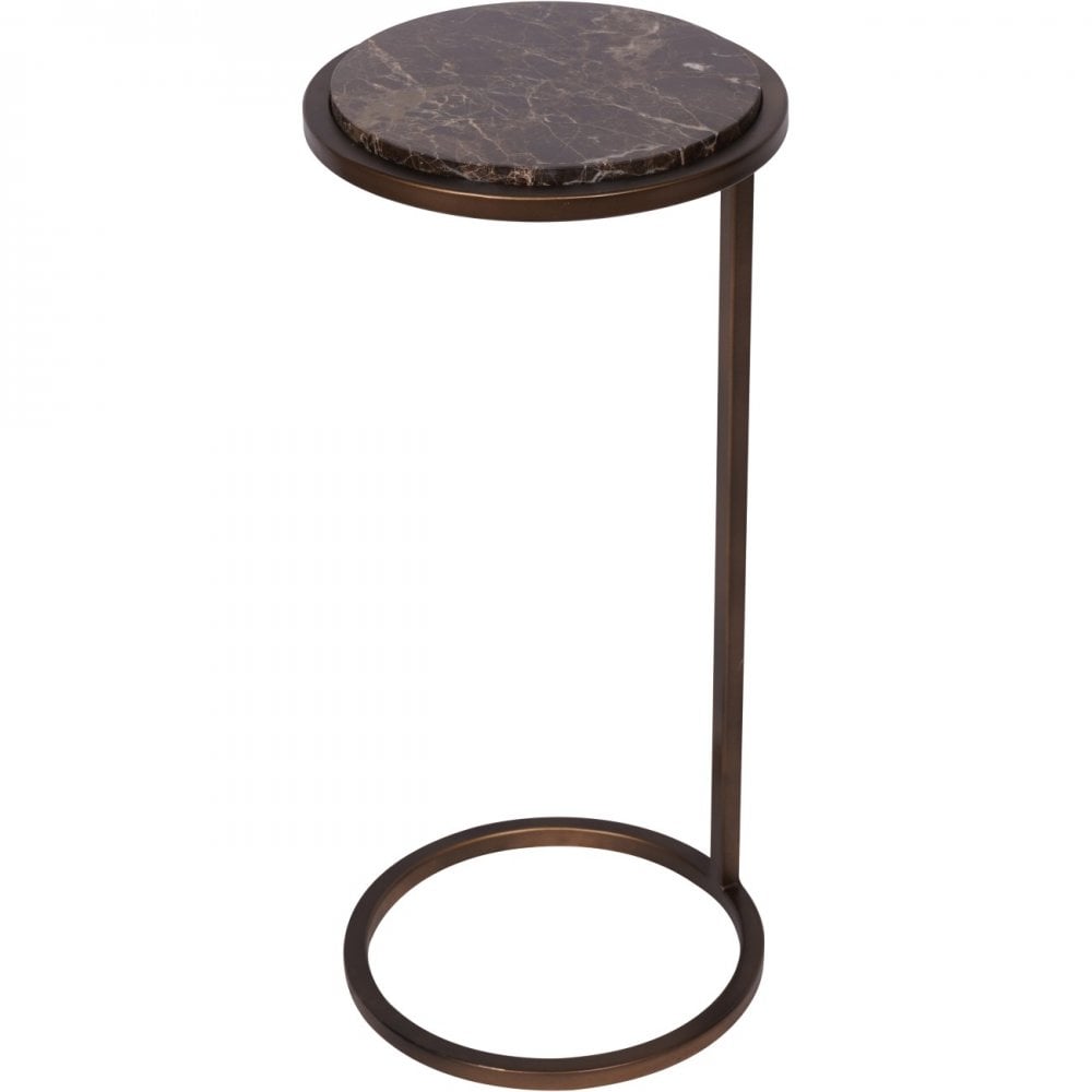 A refined evolution of the popular Iota range, these striking round accent tables combine luxurious materials with a timeless silhouette. Each design features a distinctive marble top - from the cool tones of Italian Grey Emperador to the rich depth of Brown Emperador, Forest Brown, and Black Marble, the soft elegance of White Banswara, and the statement allure of Green Onyx. Every piece is complemented by a beautifully finished iron frame in either aged silver, smoked gold, or aged gold, creating a harmonious balance of sophistication and warmth. A sculptural base detail lends a subtle retro influence, making the Iota Accent Table an ideal choice for layered, contemporary interiors.