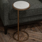 Iota Side Table White Banswara Marble & Brushed Gold Frame