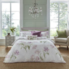 The Gosford grape pillowcase pair by Laura Ashley consists of a bold and beautiful blooms print, created in a painterly effect for a stunning finish. The pillowcases feature a delicate lavender and green colour scheme that continues onto the pillowcases. Printed onto a white high quality 100% cotton sateen material for a soft and luxurious feel, with a playful stripe reverse for added interest. These pillowcases are perfect for adding a fresh and charming touch to your bed, bringing a touch of spring to your home all year round.