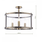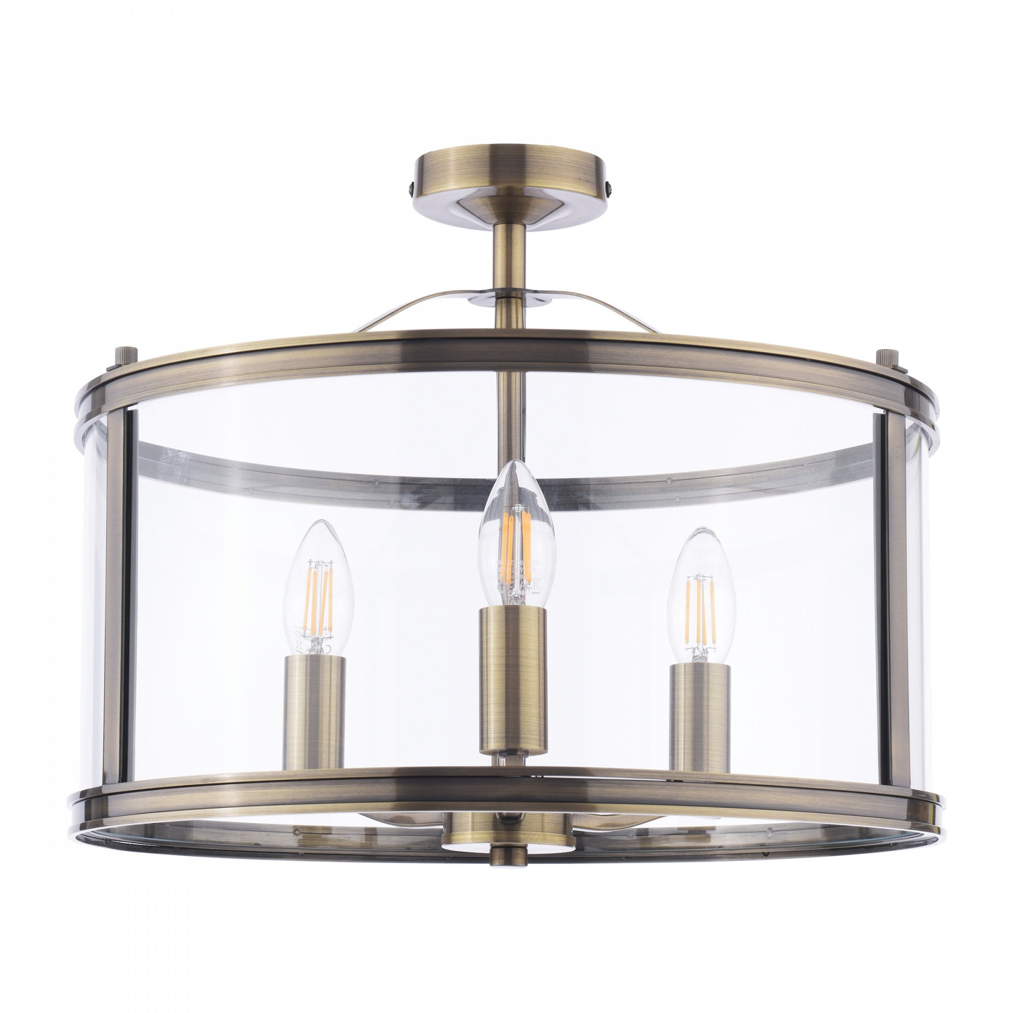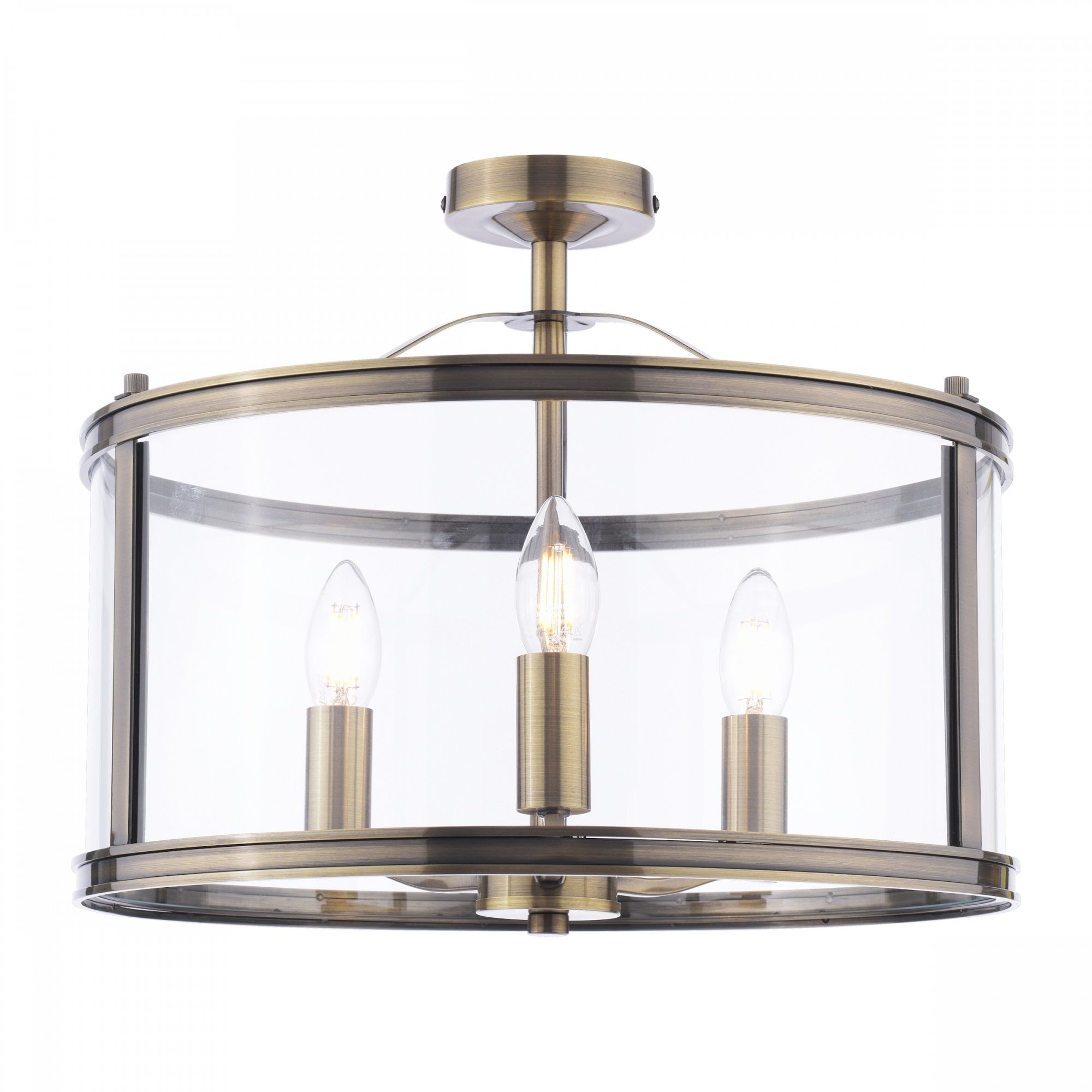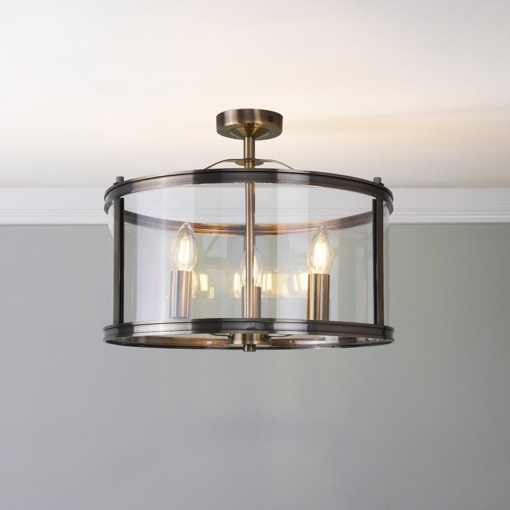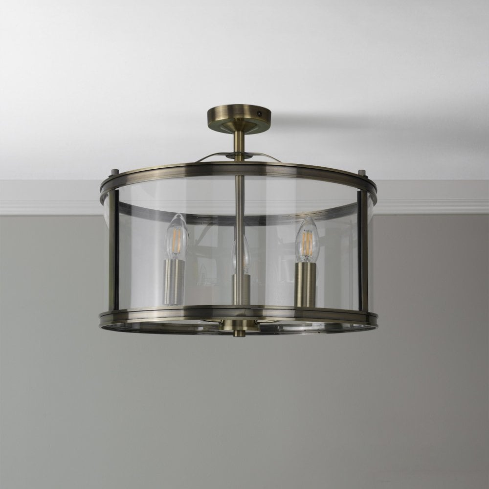 Harrington Antique Brass & Glass Semi-Flush Ceiling Light