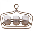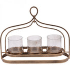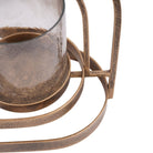 Aged champagne finish hurricane on iron featuring hammered glass which creates a beautiful effect. Part of the Loop candlelight collection.