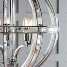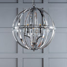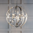 A thoroughly modern table light from Laura Ashley, the Aidan is a pretty open globe formed by encircling faceted crystal bands trimmed by metal with a polished chrome finish. Containing five lights, on a chandelier fitting, this large decorative pendant light will fit neatly into any room of your home, adding up to the minute style.