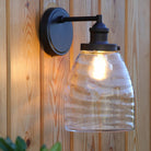 The Ainsworth wall light by Laura Ashley is a graceful wall light fitted with an enclosed clear wavey glass, this exterior wall light has a matt powder-coated finish. This is a perfect outdoor light fitting for beside or over a doorway.