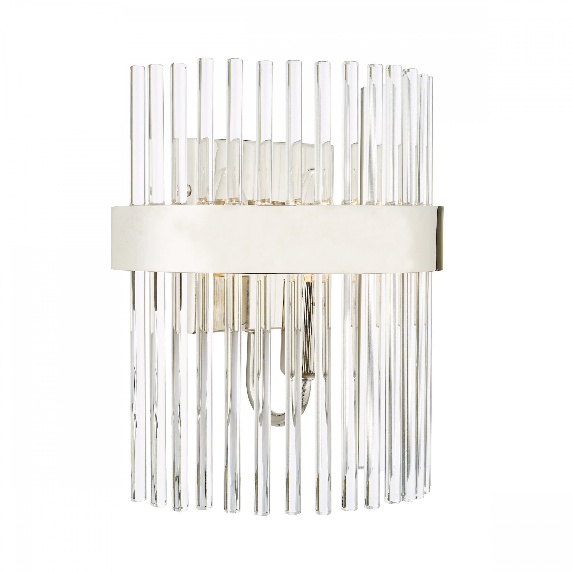 The Alexa Wall Light by Laura Ashley is a modern piece that features circle glass rods with a band of polished nickel. This beautiful lighting pieces will be a timeless addition to your home.