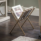 Antique brass finish Magazine Rack in iron with bamboo detailing on frame. Elegantly proportioned to store a large number of magazines and newspapers. Ideal beside sofas and chairs or beside the bed. Finally an elegant solution to publication storage. Delivered fully assembled. Part of a wider collection of Laura Ashley Bamboo inspired products including drinks trolley, umbrella stand and magazine rack, a stylish array inspired by the timeless beauty of bamboo.