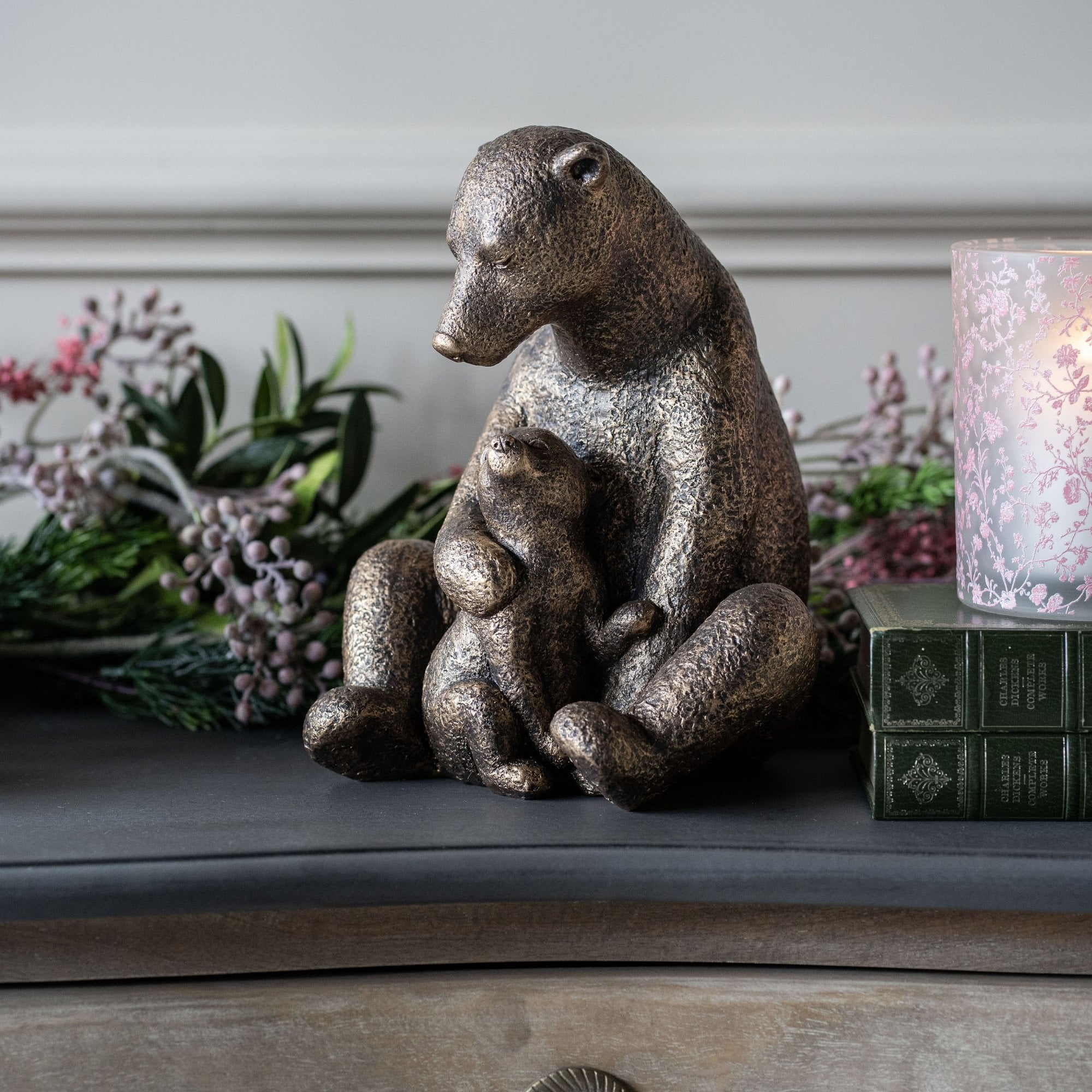This large playful sitting Hare is finished in antique gold and measures 16 cm in height. A wonderful companion in any room.