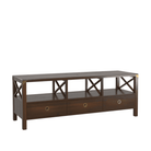 The Laura Ashley Balmoral 3-Drawer Wide TV Unit provides ample storage for all things audiovisual. There are three good-sized drawers as well as a fixed shelf divided into three practical compartments by a distinctive cross design. The item is stained to a rich colour and lacquered for a low-maintenance finish and will complement any lounge or TV room. The 155cm wide platform can accommodate Flat Panel screens up to approximately* 70". *Based on the average 70" screen being no wider than 155cm so that it does not overhang the sides of the unit.