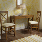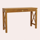 This hall console table has a central single drawer and stylish cross strutt sides. Ideal for use in a hallway due to the shallow depth and sleek sizes. The design inspiration in the collection comes from the furniture used in country houses of the 17th and 18th centuries and this is shown by use of the brass effect fittings and handles, as well as the strutt sides on many pieces.