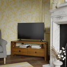 The Laura Ashley Balmoral 2 Drawer Corner TV Unit provides ample storage for all things audio visual. There are two good-sized drawers as well as a fixed shelf. The item is cleverly compact and will complement any lounge or TV room.