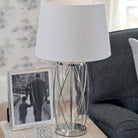 Beckworth Polished Nickel Lattice Table Lamp & Blue Shade