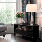 The Laura Ashley Henshaw 2 Drawer Corner TV Unit effortlessly enhances any sitting room with its exquisite craftsmanship. Crafted primarily from solid wood and featuring some veneered elements, this unit boasts two good-sized drawers and an open back in the media shelved section above, ensuring convenient cable management. Hand-painted and finished with a clear lacquer, the unit requires low maintenance to preserve its beauty. Subtle distressing on its edges adds a touch of timeless charm, creating a gently aged effect that complements its overall appeal. Enjoy easy setup with only the legs needing attachment, as full assembly is not required. Embrace the elegance and functionality of this corner TV unit, a perfect addition to elevate your entertainment space.