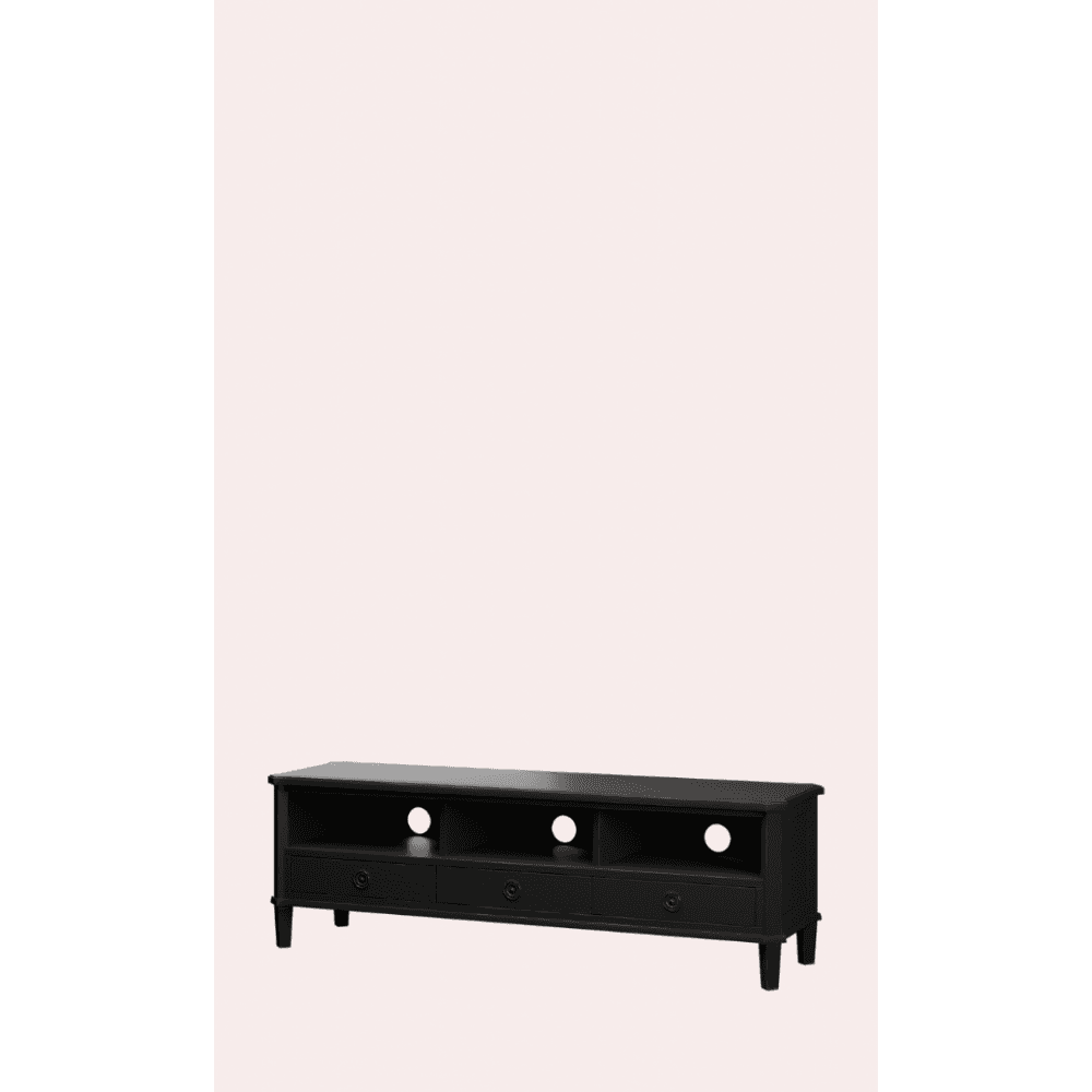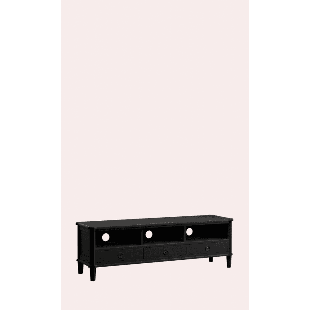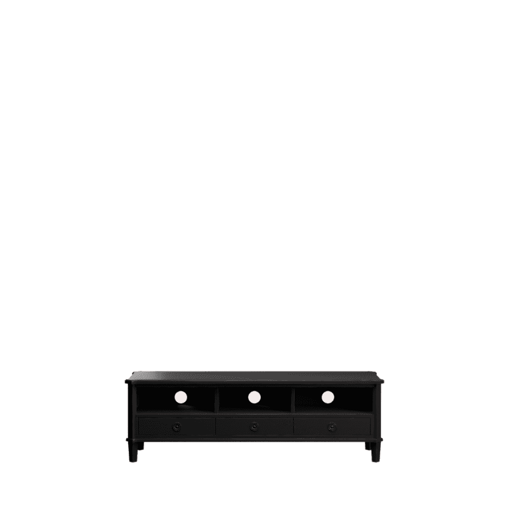 Black Henshaw Black Solid Wood 3 Drawer Wide TV Unit