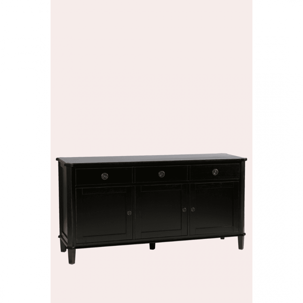 Henshaw Sideboard Black Hand-Painted Wood Three Doors Three Drawers